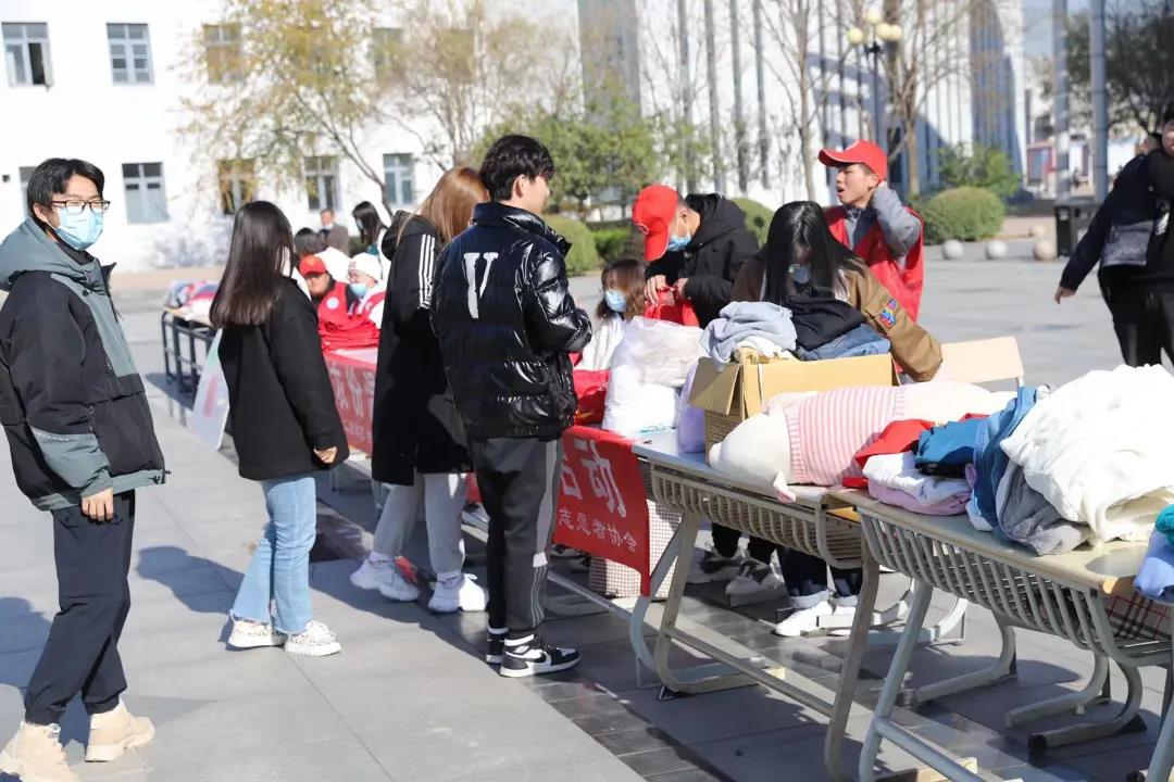 活动期间,志愿者身穿志愿马甲,热情地向过往同学宣传捐物助人的理念,号召大家参与到活动中来。随着活动的开展,桌子上摆满了大家捐赠的衣服,这其中的每一件衣物都体现了同学们可贵的心意。活动结束后,志愿者们将衣物整理、分类、打包,并委托“白鲸鱼旧衣服回收”机构将大家捐赠的衣物清洁消毒,送往全国各地。希望一份份沉甸甸的衣物能让贫困山区的人们在这个寒冬感受到爱心与暖意。