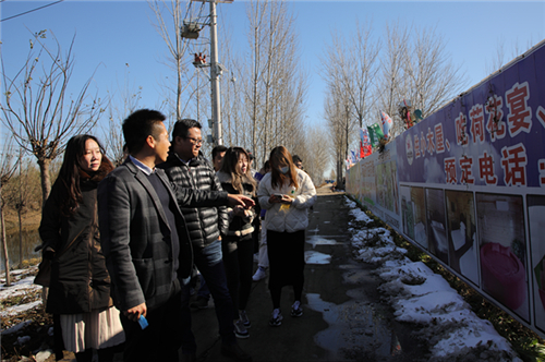 艺术学院有关负责人同蓟州区下窝头镇相关负责人及米兰驻村工作队全体成员展开座谈,就乡村环境提升、乡村特色文化产业发展、大学生劳动教育等工作进行了探讨交流,并针对乡镇发展、乡村振兴过程中出现的问题及未来发展方向提出建设性意见。活动人员共同深入乡村街道、田野、景区进行实地考察调研,环艺系师生围绕乡村建筑、道路、河道与景观特点进行实地测量与记录,并将实践真题带回课堂、带入毕业设计,“设计赋能乡村振兴”将在师生的教与学中落实落地。