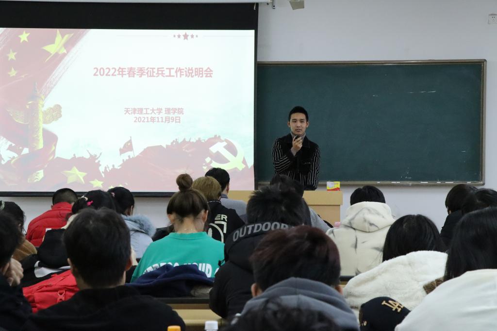 为贯彻落实征兵政策,鼓励在校大学生积极响应党和国家的号召,激发广大适龄青年参军报国热情。11月9日,理学院开展2022年春季征兵宣讲。