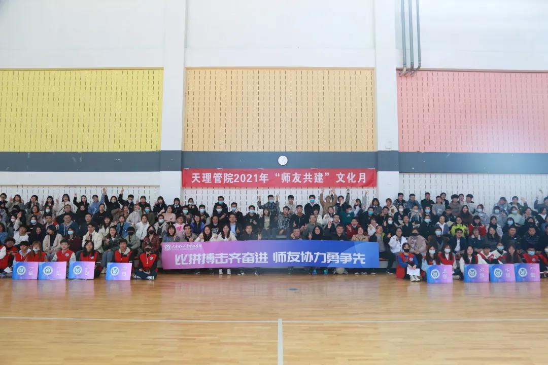 为学习贯彻习近平总书记“七一”重要讲话精神,全面贯彻党的教育方针,不断完善“师友共建,德学示范”思想政治工作品牌建设和“党建引领”工程,管理学院于11月10日在体育中心举办2021年“师友共建”文化月开幕式暨“比拼搏击齐奋进 师友协力勇争先”趣味运动会,学院师生近200人参加活动。