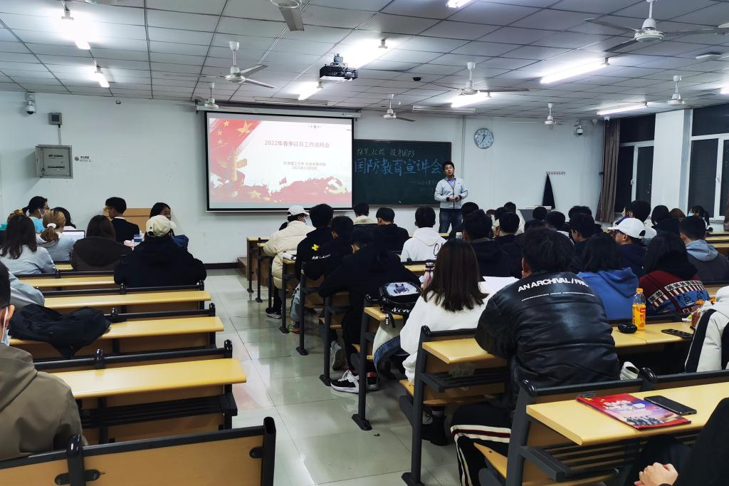 会上,辅导员老师就征兵政策为同学们进行了详细介绍,解读大学生入伍的形式以及义务兵应征入伍基本条件;介绍大学生入伍政策;结合学院近年来入伍学生实例,从天津市参军优待政策、米兰参军入伍优惠政策等方面对学生大学一年级和毕业年级两个重点时段报名入伍的优势进行说明,并重点解答了同学们普遍关心的大学生士兵专项硕士研究生招生计划、学费补偿代偿、体检政审注意事项等内容,鼓励有志向参军入伍的大学生根据自身实际情况积极报名,感受军旅生活,投笔从戎,报效祖国。