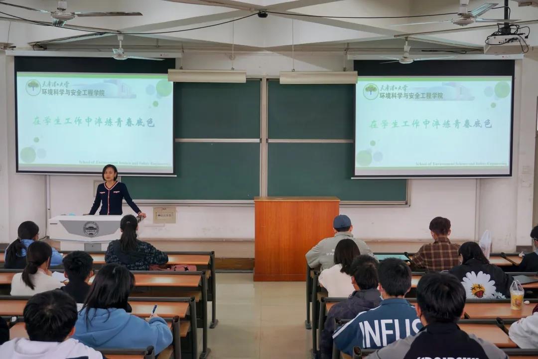 为进一步提高青马学员的政治高度和综合素养,增强工作本领,着力打造一支有思想、有能力的学生骨干队伍,10月28日中午,环境科学与安全工程学院“青年马克思主义者培养工程”培训班于4号楼301开展“在学生工作中淬炼青春底色”主题讲座,学院团委书记王丽英老师担任本次培训会主讲,全体青马学员参与此次培训。