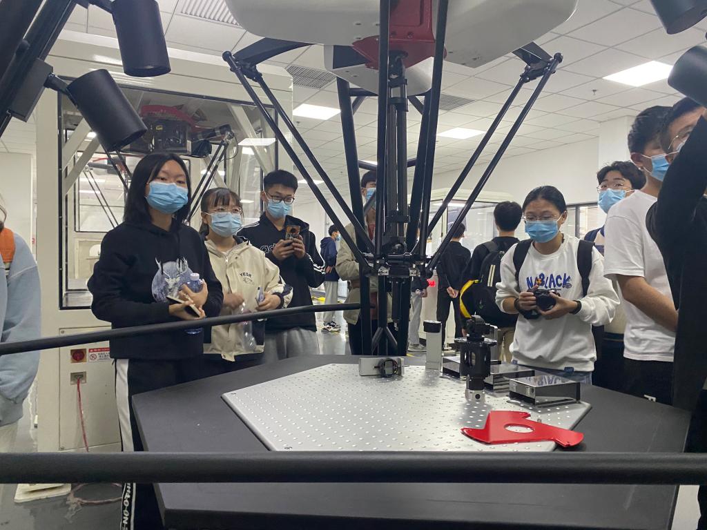 走访参观过程中,首先参观了设备间,并联机器人、串联机器人、机械臂等专业内容呈现眼前,学生们或交流机器人类型、或拍照记录型号;接着来到企业发展史展厅,了解该公司的发展历程及重大事项;最后,企业代表向同学们介绍了本公司在创新研发、紧追时代潮流过程中的艰苦奋斗历程,他说,“两弹一星”精神始终鼓舞着一代代科技工作者忠诚报国、矢志奋斗,同学们认真聆听,备受鼓舞。