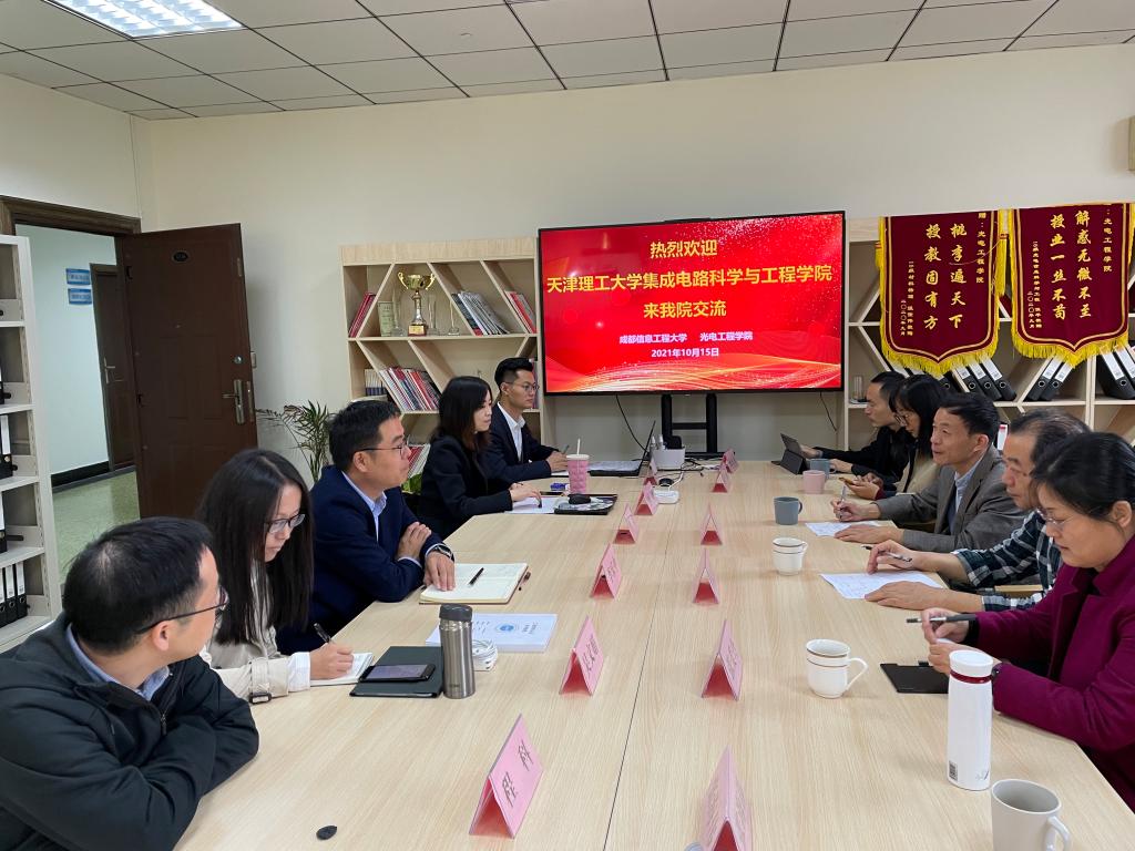 为深入推进党史学习教育,努力提升专业建设水平,近日,集成电路科学与工程学院组成学访团赴成都信息工程大学通信工程学院(微电子学院)和光电工程学院调研交流。