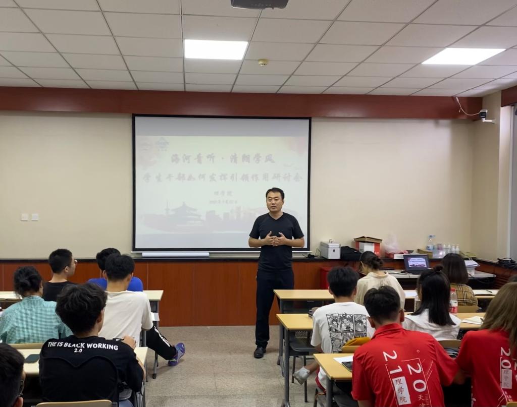 为了进一步加强我院学风建设,提高学生干部工作能力,掌握良好学习方法,更好地学习专业知识,提高自身竞争实力。理学院团委于2021年9月27日中午13:00在10号楼106教室开展了学生干部“海河青听·清朗学风”主题教育研讨会。
