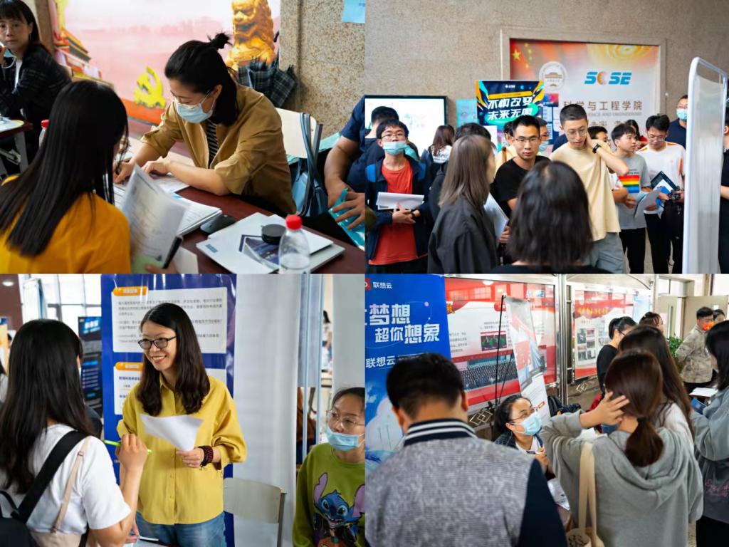 为推动2022届毕业生就业工作,拓宽学生就业渠道,发展用人单位交流平台,2021年9月24日上午,计算机科学与工程学院2022届毕业生秋季首场线下双选会在学院一楼大厅召开。学院有关负责人、毕业生辅导员及就业负责教师来到双选会现场。
