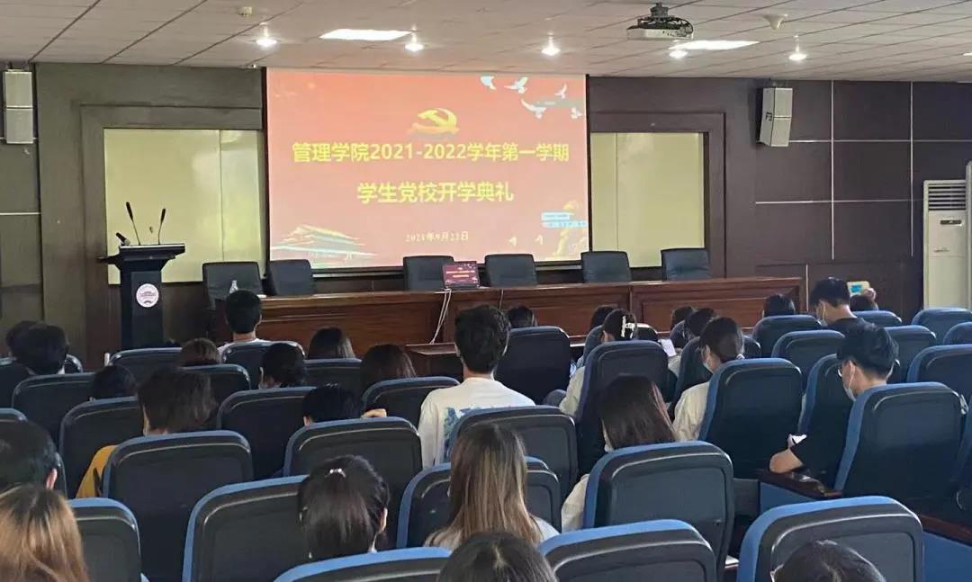 为贯彻落实习近平总书记“七一”重要讲话精神,引导大学生坚定正确政治方向,听党话、感党恩、跟党走,管理学院在理学院举行2021-2022学年第一学期学生党校开学典礼暨专题培训,学院相关负责同志、各党支部书记以及全体初级党校学员173人参加,会议采取线上线下结合的形式开展。