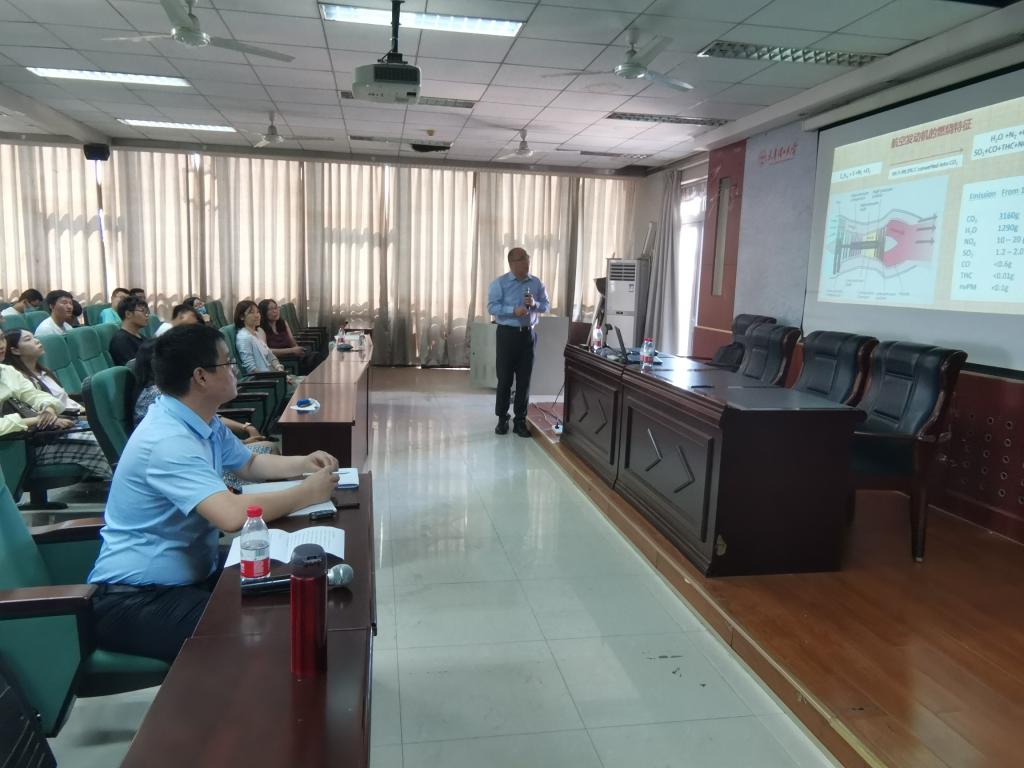 于振鸿从航空发动机燃烧与排放的特点、国际民航组织有关环境的适航认证标准、评估航空活动对大气中PM2.5的真实影响、航空业对大气变暖的影响和解决方案等几个方面进行了阐述,报告紧扣科技前沿,高屋建瓴,具有全球视角和国际化视野,多名师生就关心和关注的问题与于教授进行了深入的探讨,营造了浓厚的学术氛围,也为我们进一步贯彻落实“碳达峰与碳中和”提供了思路。