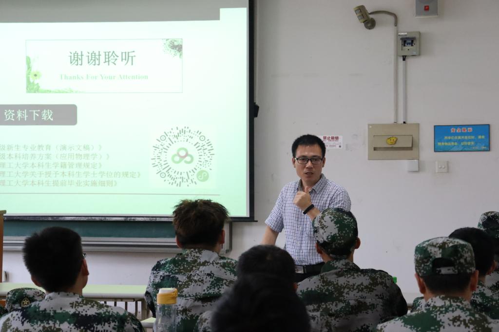 应用物理学专业介绍会上,系主任杨帅老师对专业师资队伍力量与学科课程设置等基本情况进行讲解,帮助新生建立专业初步认知,增强新生对专业的认同感与自豪感,以高中物理与大学物理的学习区别为切入点,突出强调大学期间自主学习与深度钻研的重要性,为大学四年的学习生涯提供方向指引,结合培养方案,全方位介绍专业的学科内涵与特色,教导新生要端正学习态度、扎实理论基础、注重能力提升。