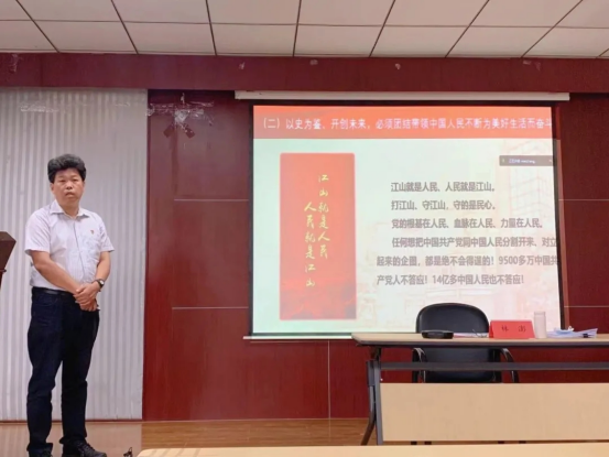 院党委书记林澎为全体新生上形势政策教育开学第一课,激励大家营造清朗学风,遵守校规校纪;营造良好的宿舍氛围,共同进步;多向优秀的人学习,多读书;加强体育锻炼,增强体质。
