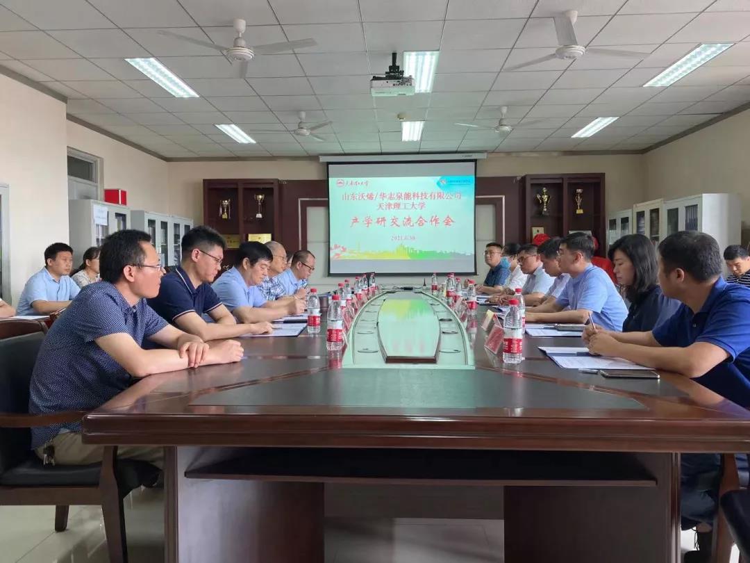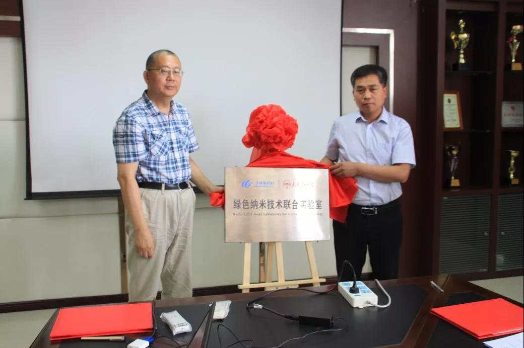 活动仪式上,山东德州经济开发区科技创新部门及山东沃烯/华志泉能科技有限公司负责同志介绍了开发区对产学研合作项目的支持政策、企业发展规划及校企联合对接实施方案。材料学院鲁统部院长对山东德州经济开发区的政策支持以及企业的战略合作意向表示热烈的欢迎,并对校企双方产学研战略合作项目的良好发展和未来成果给予了高度期望。为整合高校与企业在科研与产业方面的各自优势,促进技术进步与成果转化,校企双方进行战略合作签约,并与绿色纳米技术研究院联合成立及揭牌“绿色纳米技术联合实验室”和“绿色新能源联合实验室”。随后,双方就产学研、成果转化的合作方案、联合实验室的技术方向、人才培养模式, “沃烯奖学金”的设立,横向课题的确立与签订等方面进行了深入探讨,推动校企产学研合作,提升核心竞争力。