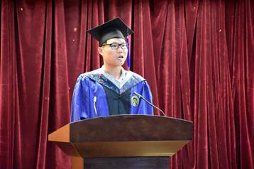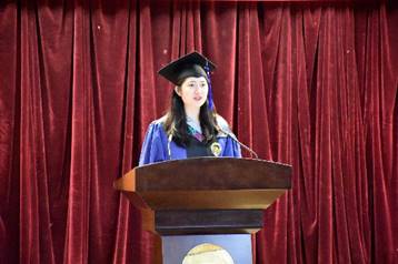 典礼在庄严雄壮的国歌声中拉开帷幕。临别之际,千言万语,硕士生导师何敬民老师、沈礼老师给同学们送出祝福,研究生代表吴芳玲同学、何雨航同学表达了对母校和老师们的感恩之情。