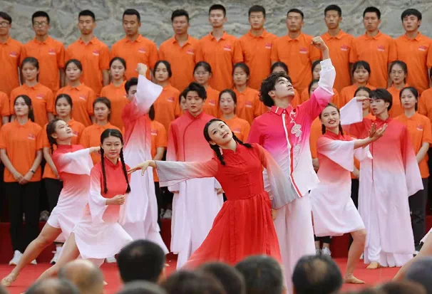 来自学生艺术团舞蹈团的30名学子出演开场歌舞《五月的鲜花》。“五月的鲜花开遍了原野,鲜花掩盖了志士的献血,为了挽救这垂危的民族,他们曾顽强的抗战不歇。”伴随着高昂嘹亮的歌声,舞者们用动人的舞姿创作出今天唯美的王兰庄景象,同时将人们的思绪带入到艰苦的历史岁月中,彰显了那些充满激情与爱的壮丽人生。