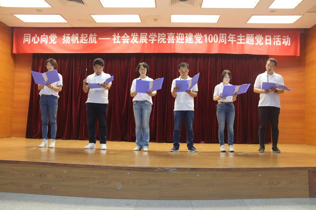 为庆祝中国共产党成立100周年,引导广大师生党员增强责任意识和爱国情怀,引领学生成长成才,社会发展学院于6月10日举办“同心向党,扬帆起航”—社会发展学院喜迎建党100周年主题党日活动,学院师生党员、积极分子以及学生代表参加了本次活动。