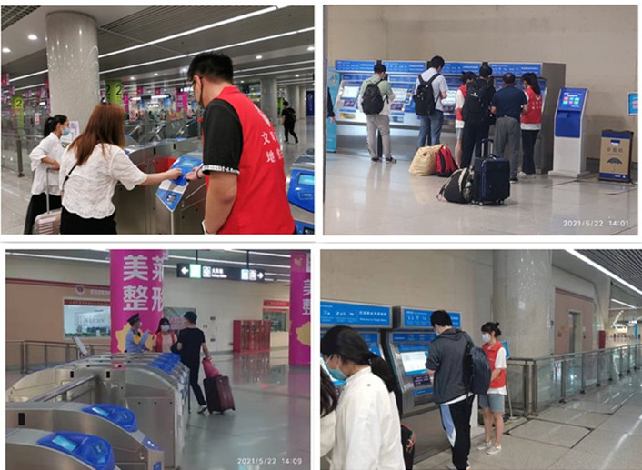 材料学院青年志愿者在天津站地铁站开展志愿服务活动,旨在为减轻津城轨道交通负担与促进津城地铁稳健发展献出微薄之力。在进出站口、售票点等多个志愿服务岗点,做好信息咨询、客流引导、设备协助、乘客秩序维护等服务。