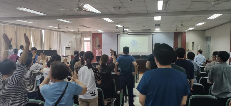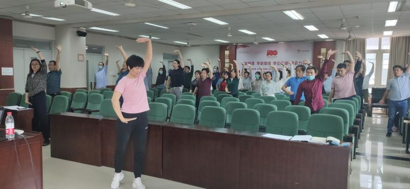 报告会上,李红艳老师围绕“日常锻炼助健康,引领健身新风尚”主题,就日常运动中遇到的问题(如颈椎腰椎保护、运动膳食搭配等)以及科学运动常识,从运动与体育健康、最好的运动、科学健身方法、养生固本等四个方面进行了专业详细的讲解。李老师采用理论讲解加现场示范的方式,让全体教师通学了健康养生操-八段锦等科学运动和养生的知识,教师们受益匪浅,并一致认为在日常的教学科研中要时常注重健康养生。