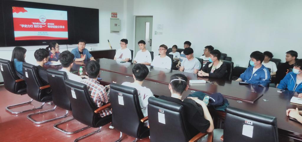 会上,辅导员老师首先介绍了2021届5名考取武汉、南京高校研究生的同学情况,同时向大家介绍了往届两地高校同学录取情况。分享会上,5位同学分别从前期准备、院校选择、面试技巧以及自身经历等方面做了详细介绍,并提醒同学们在备考过程中要注意事项。现场提问环节中,学长学姐逐一对同学们的提问进行耐心解答,并建立QQ群,分享了自己的资料,同时鼓励同学们夯实基础,顽强拼搏,持续发力。