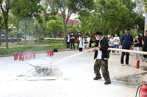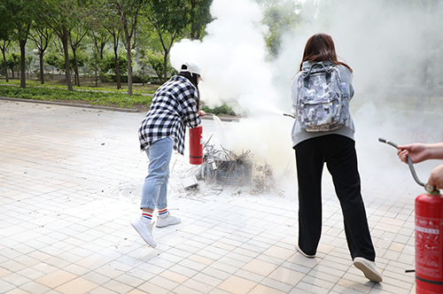 5月10日,理学院、环境科学与安全工程学院、艺术学院、语言文化学院联合举办消防安全培训和应急演练活动。本次活动由米兰保卫处刘博洋老师主讲,刘老师结合自己多年消防部队的工作经历,为同学们剖析了近年来全国高校火灾真实案例,详细介绍了消防器具的功用和使用注意事项,及实验室安全注意事项、管理规定。随后培训师生在室外进行了消防安全演练活动。保卫处工作人员现场演示了可控火灾处置方法,师生近距离地观察和了解各种消防器械的使用,并实际练习使用了灭火器、喷水枪等灭火工具,进一步提升了师生对消防器材的使用能力。