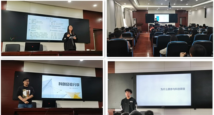 培训会上,学院创新创业实践中心负责同学从参与科研项目的准备、项目价值的延伸性,科创类、学科类两个不同类型赛事等方面进行了分享。明理奖学金获得者闻淑悦结合亲身经验建议同学们认真学习专业知识,提前做好规划,积极主动地解决问题,她还介绍了在科研过程中必备的技能,要善于运用学校资源提高科创水平。“挑战杯”创新创业大赛市赛金奖获得者徐腾通过分享参与比赛的经验,讲到在参与科创项目过程中实践调研、积极动手的重要性。参与科创项目就是将理论知识和实践有机的结合,要注重实践调研,对比整合才能突出自己的项目优势。