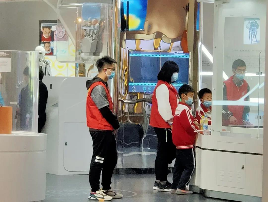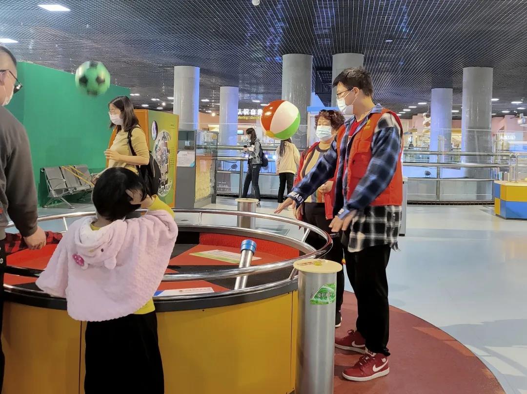 另一部分志愿者作为馆内科技展品讲解员,通过讲解传递与科技相关的知识,积极引导游客进行实操,使他们真正走进科技作品,了解科技世界。生动的讲解增加了这次展览的趣味性和教育性。