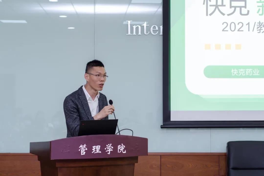 海南快克药业有限公司市场中心总监蔡丁一先生为大家介绍海南快克药业与相关产品,并对快克新青年高校市场部创新项目的执行效果表示高度肯定。他表示,作为一家具有青年奋斗精神的感冒药品牌,快克将一直致力于品牌年轻化工程,并在未来几年内在校企合作、产教融合领域做出更多的探索。