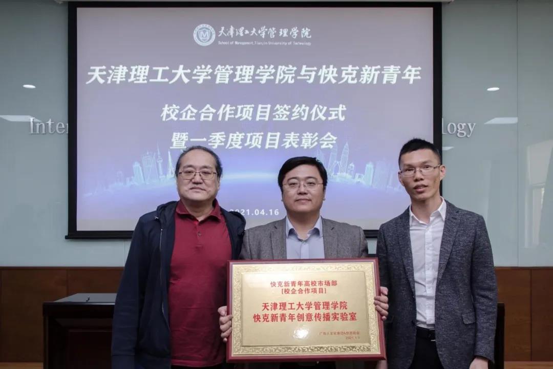 随后,广告人文化集团董事长李文龙先生、海南快克药业有限公司市场中心总监蔡丁一先生、管理学院副院长刘炳春教授共同签署快克新青年创意传播实验室实习实践基地合作协议书,并完成授牌仪式。