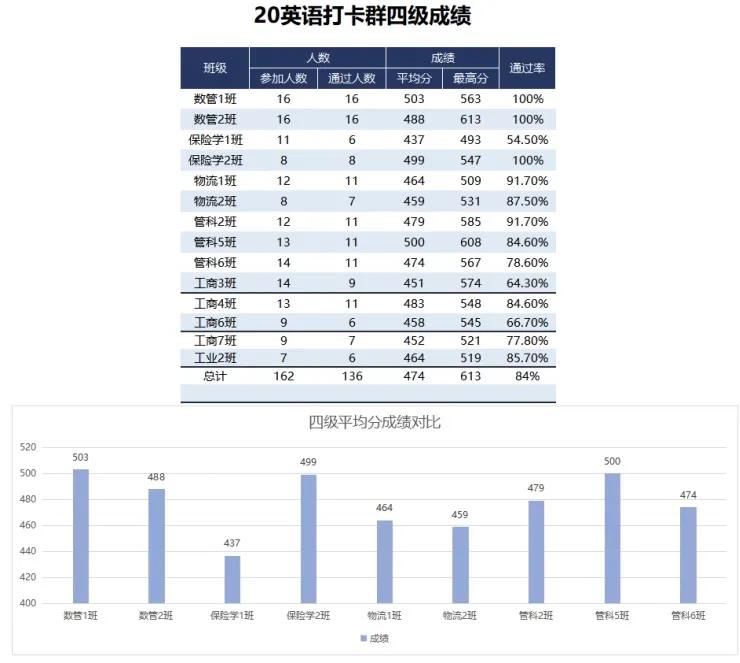 共二百余名2020级管院学子报名参与到此次活动中,其中162名同学们坚持每天按时按量完成打卡并附上学习截图,对待学习从未懈怠,各班负责人更是认真落实打卡情况,以专业或班级为单位总结汇报到QQ群,两位英语小老师张文静、徐元涛及时细致地进行记录,在这一个月同学和小老师的互相配合下,最终参加打卡群的同学中有136名同学通过了首次四级考试,通过率高达84%。万丈高楼平地起,单词是组建英语的基础,随着学习习惯的养成,学习过程中的逐步积累,其理解与思考也逐渐深入,不心浮气躁,不好高骛远,于细微处见精神,于细微之处见水平,此活动充分发挥了其应有作用。正如学风建设,不是一蹴而就,而是潜移默化、循序渐进的过程,在未来的学习生活中,仍需要老师和同学们的共同努力。