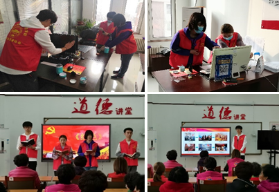 志愿者们带着准备好的清洁工具,通过自己的双手优化社区环境。随后,志愿者们来到道德讲堂进行党史宣讲,与社区居民共同回顾共产党的发展历程。宣讲结束后,志愿者和社区居民通过诗朗诵表达了自己对党的热爱之情。最后,志愿者们还向社区居民讲述了关于网络安全的知识。
