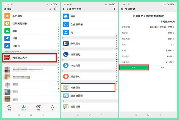 师生服务中心会同网信办、教务处、后勤管理处共同开发的公共教学楼教室查询系统即日起上线运行,同学们可以通过学校微信企业号“教室查询”模块随时随地查阅学校公共教学楼空闲教室情况。教室查询系统投入使用将有效缓解学生自习教室紧张的问题,进一步释放教学资源潜力,提高教室资源利用率,助力学校教风学风建设。