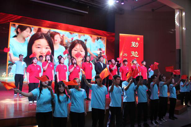 典礼尾声,全场观众相继唱响《我爱你中国》《歌唱祖国》,将本场颁奖典礼推向高潮。大家挥舞国旗,向祖国深情告白。嘹亮的歌声,舞动的红旗,寄托了师生们对伟大祖国深深的热爱和自豪。