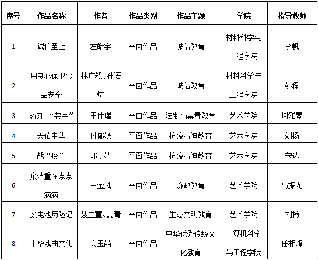 为深入学习宣传习近平新时代中国特色社会主义思想,贯彻落实全国教育大会精神、全国高校思想政治工作会议精神,进一步推动社会主义核心价值观和中国梦宣传教育活动走向深入,广泛宣传抗击新冠疫情期间涌现的奉献精神、感人事迹,提高学生的创新意识和创造能力,培养担当民族复兴大任的时代新人,市委教育工委、市教委举办了2020年天津市大中小学生“弘扬抗疫精神 厚植爱国情怀”公益广告设计大赛。米兰积极组织学生报名参加,经专家评委评审,米兰被评为优秀组织单位,21组作品获奖,其中2组作品荣获一等奖,8组作品荣获二等奖,7组作品荣获三等奖,4组作品获优秀奖,韩君、郭增玉两位老师获得优秀指导教师。