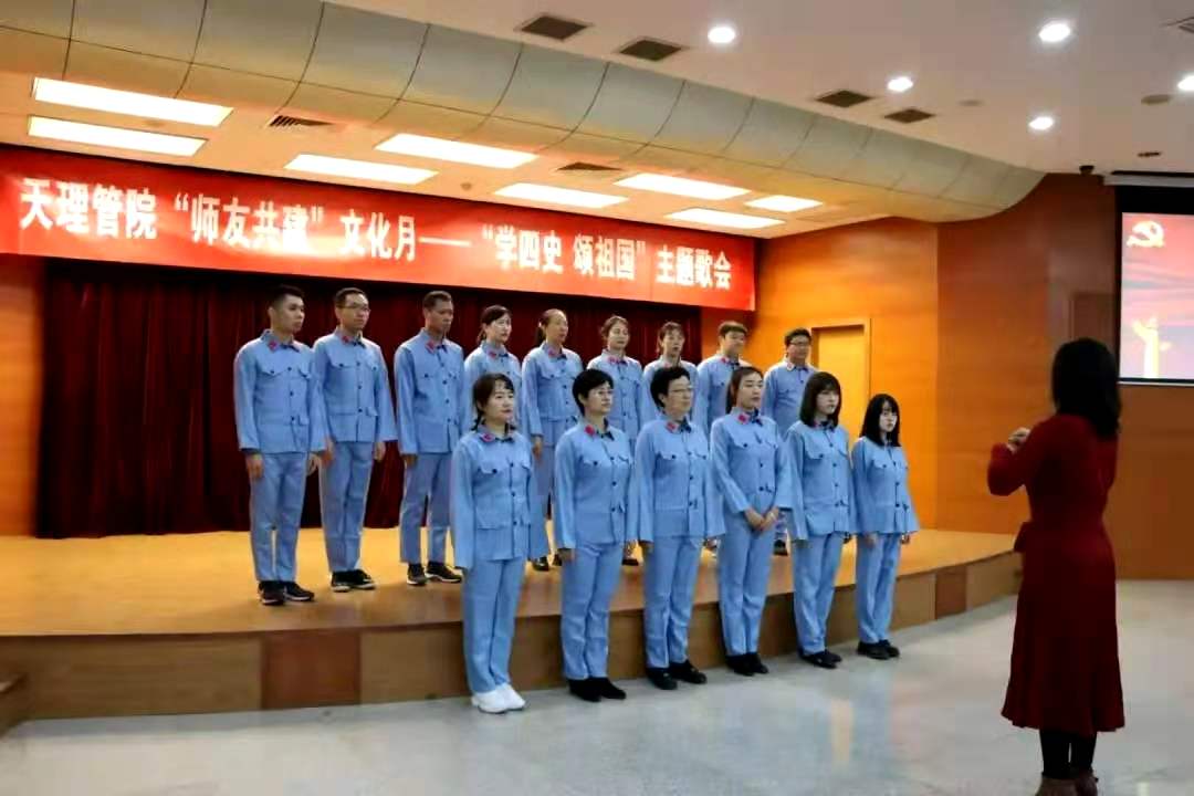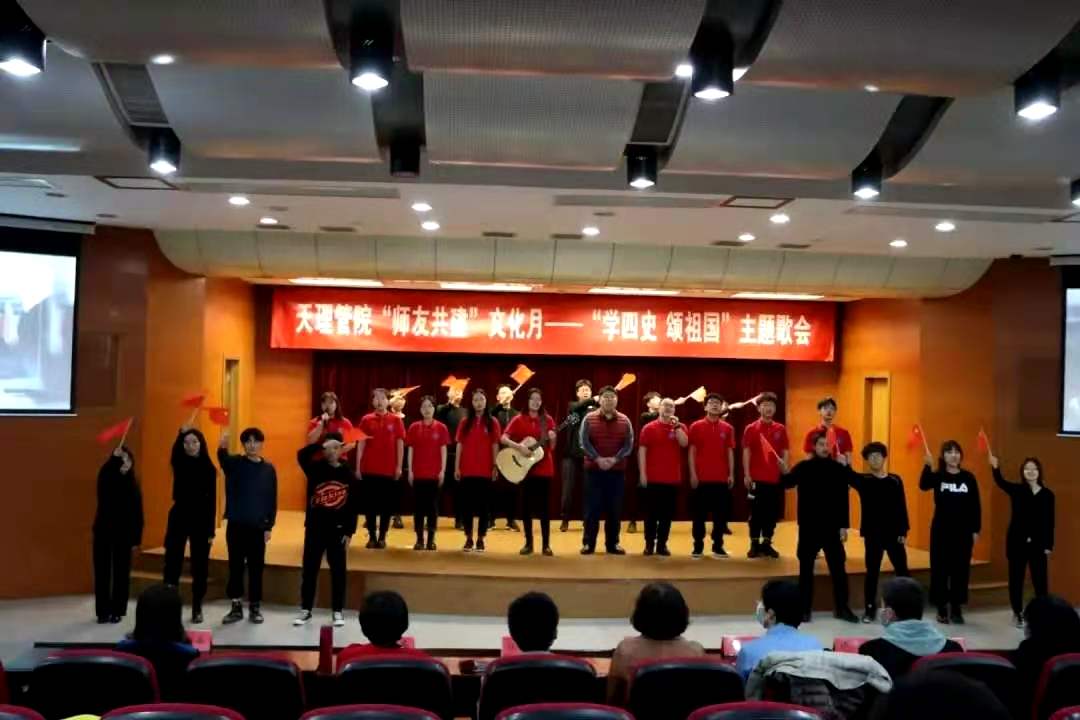 为深入学习党的十九届五中全会精神,全面贯彻落实米兰milan官方网站“教风学风建设年”工作要求,进一步展示我院师生自强不息,团结合作的精神风貌,管理学院于近日举办“学四史 颂祖国”主题歌会。作为“师友共建”文化月的又一重要活动,吸引了学院领导班子成员、党委委员、各党支部书记以及师生党员近两百人参加,在嘹亮歌声中全体人员共同重温了我们党为人民谋幸福、为民族谋复兴、为世界谋大同的伟大实践史。