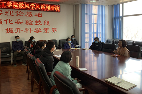 最后,学院党委书记姜海燕同志对与会教师提出了具体要求,她强调要以“立德树人、教书育人、培养德智体美劳全面发展的社会主义建设者和接班人”为根本责任和培养目标,注重师德师风的塑造,要因材施教将思想政治教育贯穿于教育教学的全过程,不断学习,齐心协力,共同推进学院教风学风建设。