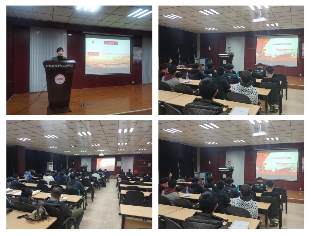 11月23日下午,计算机科学与工程学院开展关于2021年春季征兵工作宣讲,学院征兵负责教师、辅导员、班委以及有意向参军的学生代表参加了此次活动。