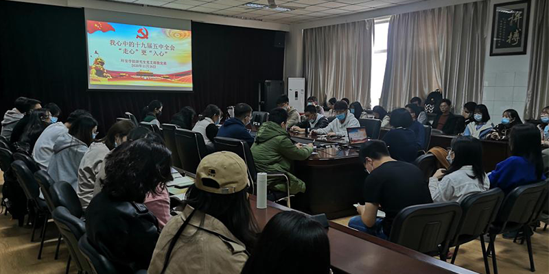 为进一步深入学习领会贯彻党的十九届五中全会精神,引导支部党员深刻把握十九届五中全会的重大历史意义,深入了解“十四五”规划和2035年远景目标,引导学生党员统一思想、凝聚共识,充分发挥研究生党员的榜样示范作用,11月16日下午,环境科学与安全工程学院研究生党支部开展了以“我心中的十九届五中全会,‘走心’更‘入心’”为主题的微党课。
