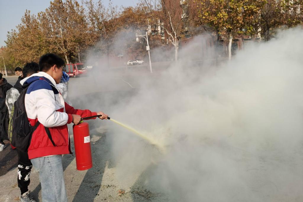 学校保卫处老师刘博洋结合近年来各大高校火灾案例的惨痛教训,从消防安全基本知识切入,结合学校实际情况,就如何做好宿舍防火以及面对突发火灾,如何应急处置逃生等三个方面讲解了校园消防安全教育的重要性,提醒每名新生要主动学习消防安全知识,掌握基本的火灾逃生技能,并在户外带领同学们进行了实战消防演练。
