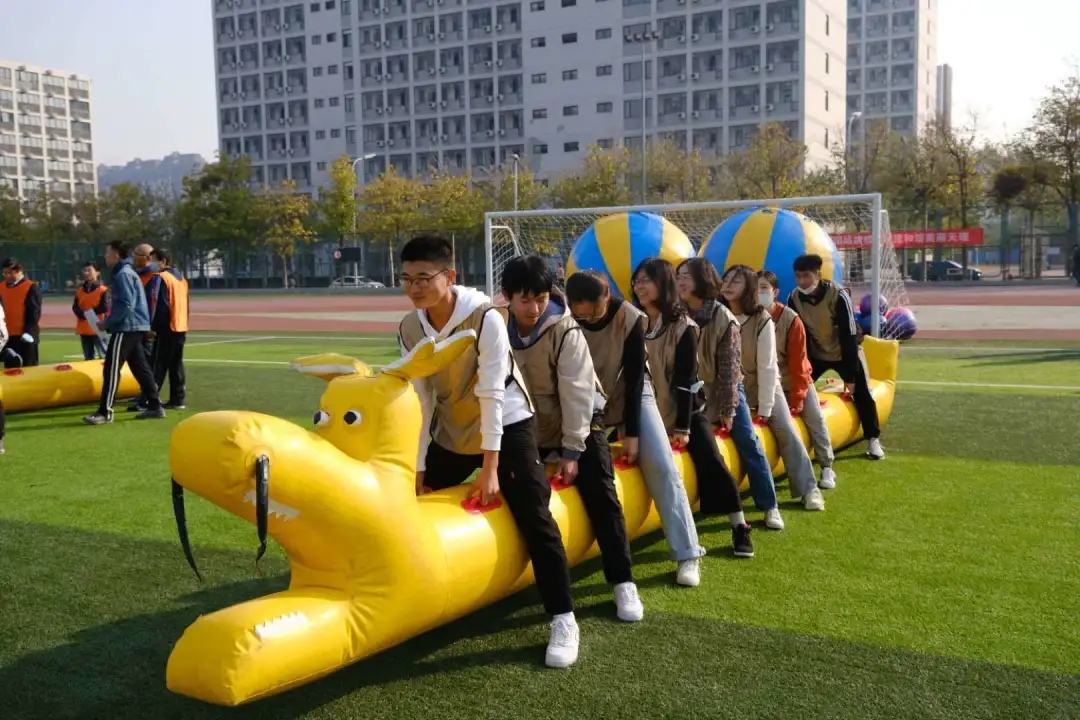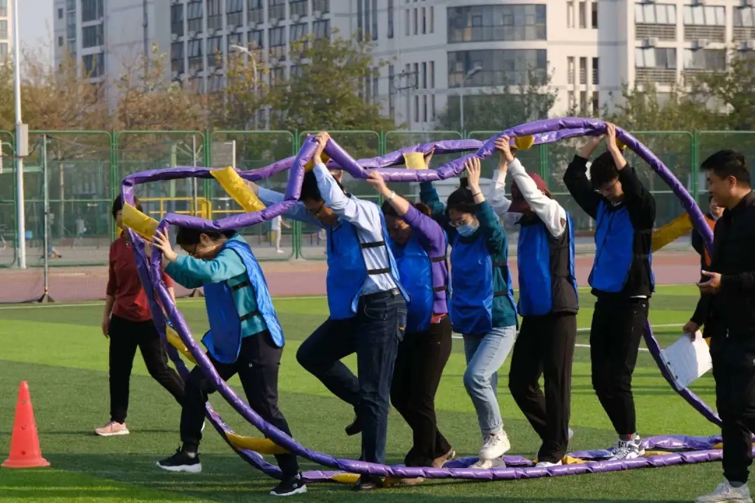 准备活动之后,随着裁判员一声令下,趣味运动会火热进行,丰富、有趣的运动项目让老师同学们乐翻了天。本次趣味运动会共包括“同舟共渡”“后浪滚滚”“同襄共举”和“一脉相承”4个项目。参赛的8支队伍由本科生党支部、研究生党支部和教工党支部共同组建,学院专任教师、行政人员和各专业本科生、研究生代表均踊跃参与。师生并肩携手合作奋力拼搏,展现了米兰管院人齐心协力、攻坚克难、勇往直前的风采。