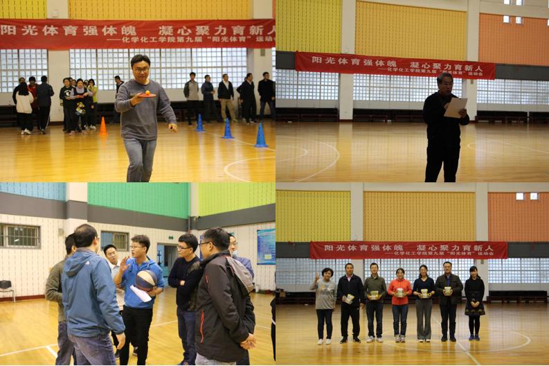 本次阳光体育运动以系为单位自主报名组队,共分为应化系组、化工系组、制药基础系组和行政实验组。活动项目包括广播体操、乒乓球、托乒乓球和定点投篮等,采取分项目方式开展比赛。比赛中各参赛队斗志昂扬、热情饱满、奋力拼搏,团队内协作默契,充分展现了良好的精神风貌和比赛竞技精神。经过激烈的比拼,各参赛队都赛出了风格水平,最终制药基础系组和应化系组分别获得了集体项目的一等奖。
