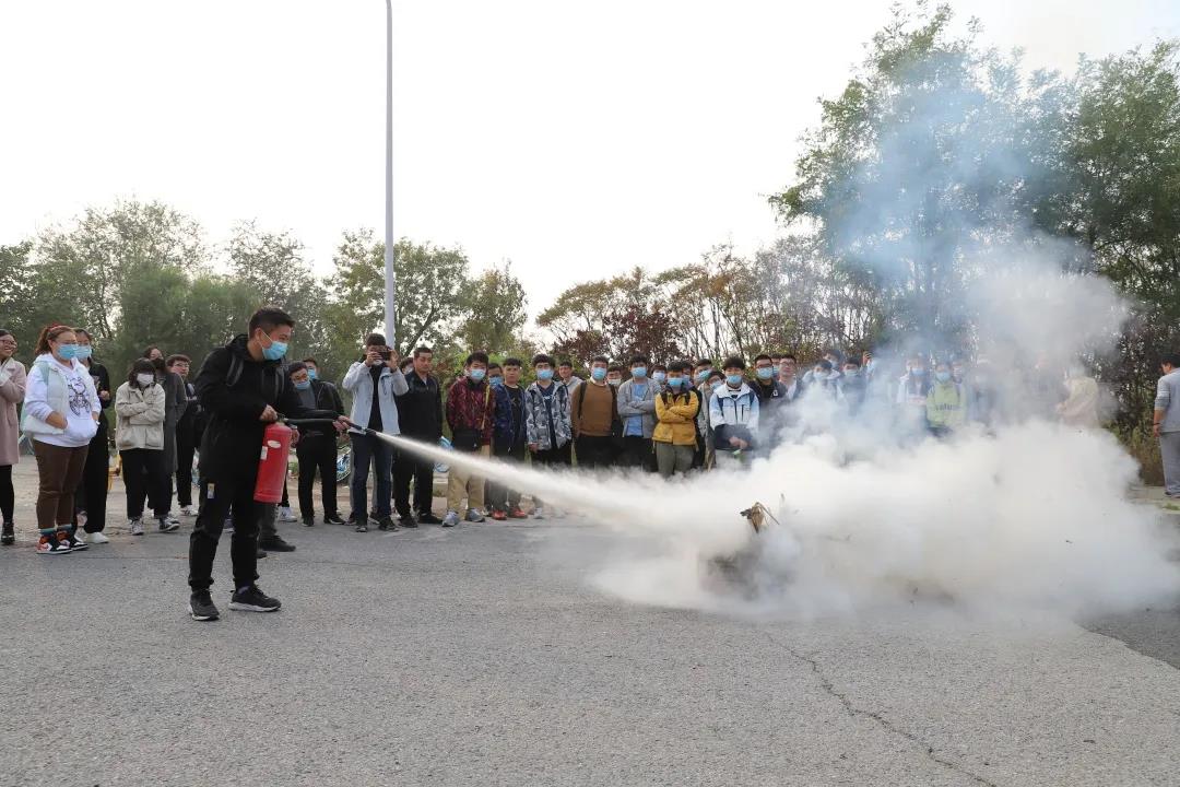 随后在刘博洋的带领下,同学们在空旷场地实际操作灭火器和水枪,加深同学们对相关知识的理解。