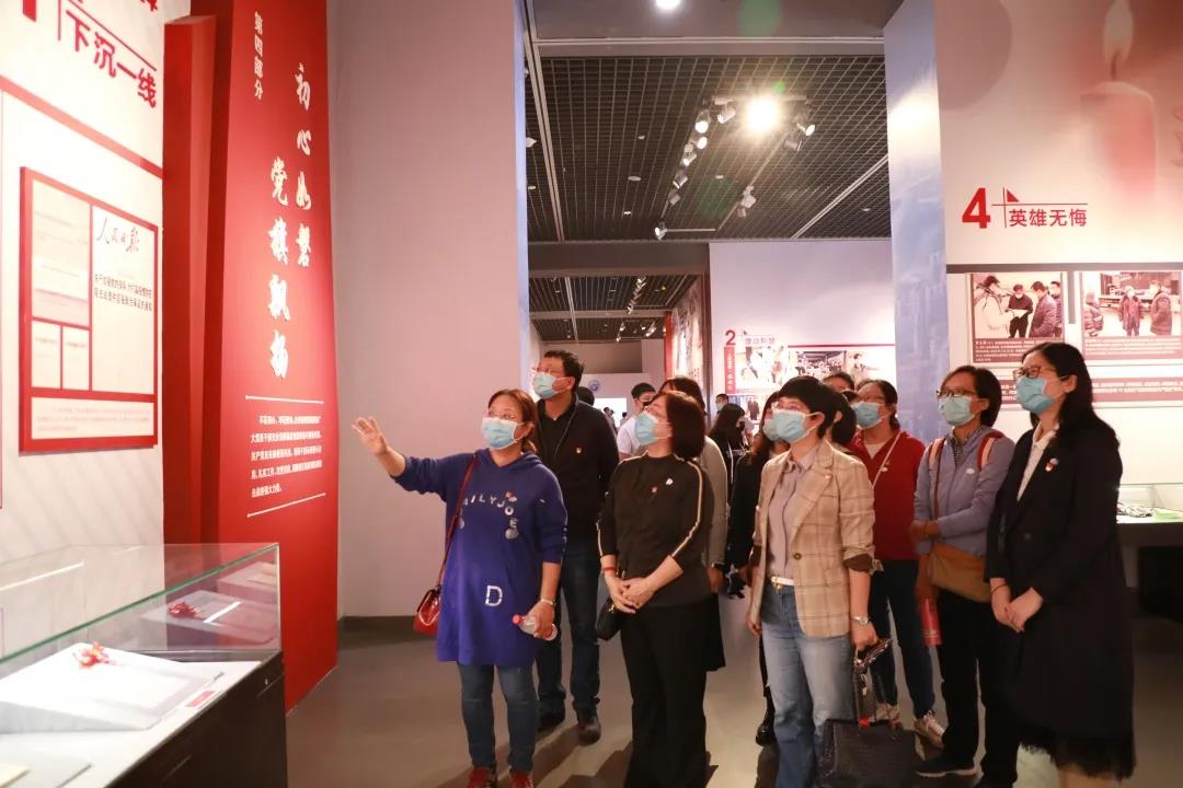 最后,全体成员来到了天津市抗击新冠肺炎疫情纪实展。纪实展分为“序言”、“四个战时,直面大考”、“全力救治,科学防控”、“闻令而动,火速驰援”、“初心如磐,党旗飘扬”、“联防联控,众志成城”、“双战双赢,决战决胜”七个部分,以大量实物、照片、视频等形式,生动展示了在习近平总书记亲自指挥、亲自部署和党中央坚强领导下,全市上下坚定信心、同舟共济、科学防治、精准施策的战“疫”历程。