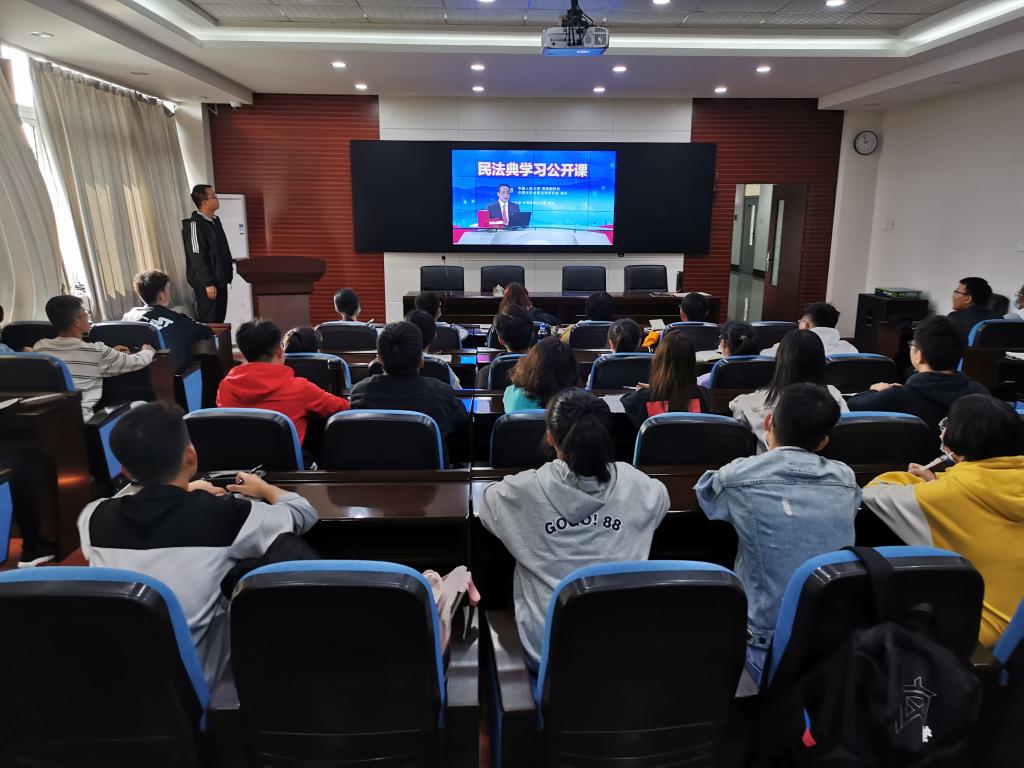 为深入学习贯彻习近平新时代中国特色社会主义思想,全面贯彻党的十九大和十九届二中、三中、四中全会精神,认真贯彻习近平总书记全面依法治国新理念新思想新战略,材料科学与工程学院组织开展普法学习宣传活动。为了使同学们更好地学习民法典,向学生传播法律知识,培养学生法律意识,10月6日组织学生集中观看民法典公开课。