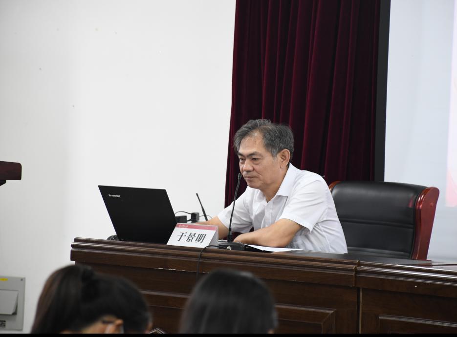 大会最后,学院党委书记于景明为新生讲授《形势政策第一课》之“四史”学习教育,分别从党史、新中国史、改革开放史、社会主义发展史四个方面向同学们进行了详尽的讲解。最后,于景明书记提出在大学期间,同学们要珍惜大学时光,勤于修学,从思想品德、专业知识,人文素养等方面把自己培养成为德智体美劳全面发展的合格的社会主义建设者和接班人。同时,要求大家不仅要树立远大理想,还要制定短期目标,规划好大学四年的学习和生活,不断督促自己为了实现目标而努力。