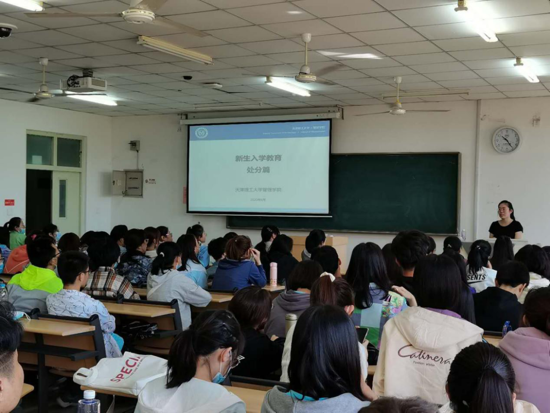 管理学院组织班会,通过系统的专题教育,围绕学籍管理、职业生涯、安全教育、违纪处分、宿舍管理、防疫教育6大主题,让新生充分了解大学阶段必知、应知的内容,让同学们养成良好学风,倡导大家把外在的约束内化为自觉的行为,勇于拼搏奋斗,走好成长成才的第一步。