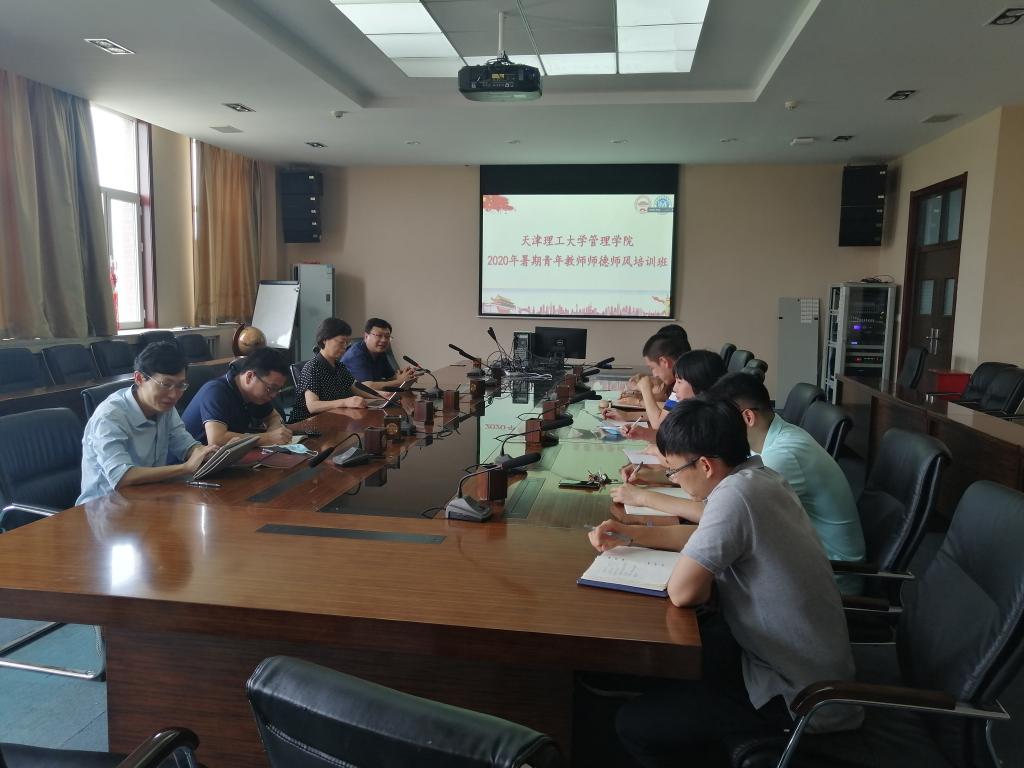 为进一步贯彻落实学校“教风学风建设年”工作要求,落实立德树人根本任务,不断提升教师队伍整体建设水平,管理学院党委利用暑期举办青年教师师德师风系列培训活动,8月6日开展第二期培训工作。天津市“课程思政”改革精品课《通用管理知识概论》课程负责人王丽平教授与全国第二批党建工作样板支部党支部书记赵斌教授进行专项讲座。