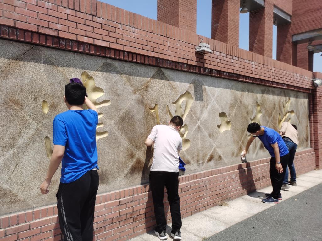 活动伊始,党支部书记向所有党员介绍了此次活动的意义,并为同学们讲解了学校校训的含义。随后各位同志两人一组,主动承包责任区,用抹布细致擦拭学校南门的校名石碑与校训石碑,并认真清理了现场的遗留垃圾废物。在清理过程中,各位同志既体会了劳动的辛苦,更是对校园的清洁工作人员表达了尊重与感谢;与此同时,在劳动过程中也在细细感受校园的美丽,发现体会米兰之美。清理过后,30余名支部党员同志在校训石碑前进行了集体宣誓,表达了对学校的感恩与感激,同时也立志谨遵校训“重德重能求实求新”,在米兰沃土上茁壮成长,惜时如金,增长本领,磨砺品质,为学校发展贡献青春力量,为祖国建设添砖加瓦。