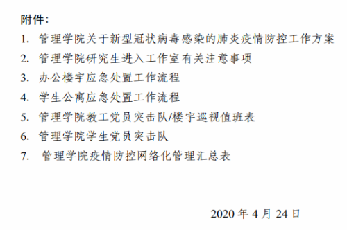 学院深入贯彻学校疫情工作领导小组会议精神,依据学校工作部署制定《管理学院复课开学疫情防控方案》(津理工管理学院党〔2020〕3 号),进一步细化人员分工安排,成立师生党员志愿者突击队,充分发挥党员先锋带头作用,在宣传动员、返校准备、接站服务、日常监测、卫生通风、校园秩序、网络动态等方面协助学院开展相关工作,全面做好我院本科生、研究生复课开学疫情防控工作,确保疫情防控科学有效,教育教学活动平稳有序。