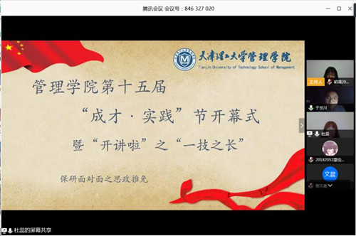 为管院学子明确目标方向,4月6日19点,管理学院第十五届“成才·实践节”开幕式暨“开讲啦”之“一技之长”分享会于腾讯会议如期举行。开幕式得到了同学们的热情响应,共计近200余人上线收听互动。