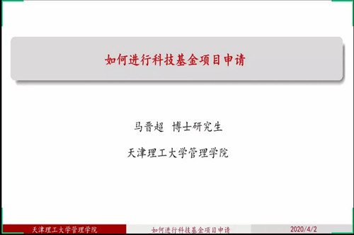 为深入学习贯彻全国教育大会精神强化学生创新意识和实践能力,激发同学们参与科技立项热情,同时结合目前科技立项过程中遇到的问题,管理学院于4月2日邀请博士研究生马晋超进行立项申请书撰写的专题指导。