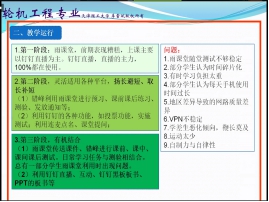 轮机工程系李雷斌老师,对轮机工程系整体的在线教学工作进行了总结,从课前课中课后进行系统梳理,以及学生表现和调查反馈。