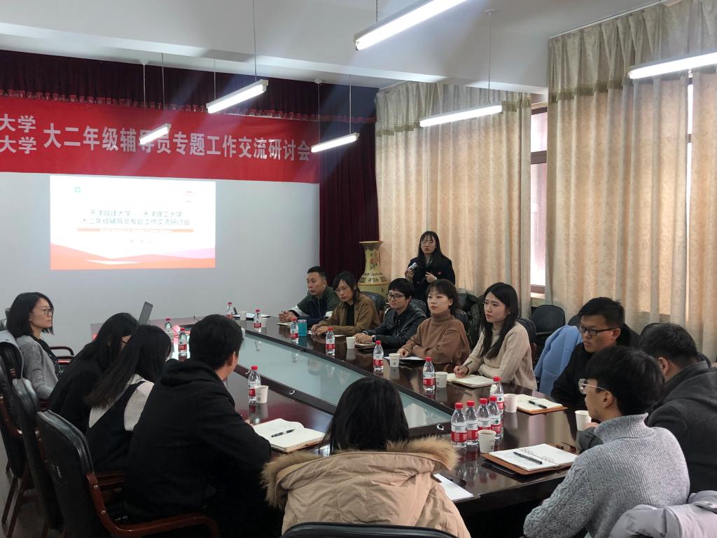 交流会上,天津城建大学环境与市政工程学院副书记魏婧老师详细介绍了学院学工整体布局和学生党建四个三教育管理体系;李丹等老师围绕各自分管领域阐述了大二年级学生管理的思路和途径。随后,两所高校的辅导员们畅所欲言,在前期充分调研的基础上,紧密结合大二学生群体特点和成长成才需求,围绕大二学生思想政治教育工作中的重点难点问题进行了交流和讨论。双方一致认为大二年级是大学生“学涯”中的关键期和转折期,需要从党团建设、班级管理、宿舍文化建设等方面加强对大二年级学生进行思政引导、学业指导和职业生涯规划,并加强分类教育和引导。